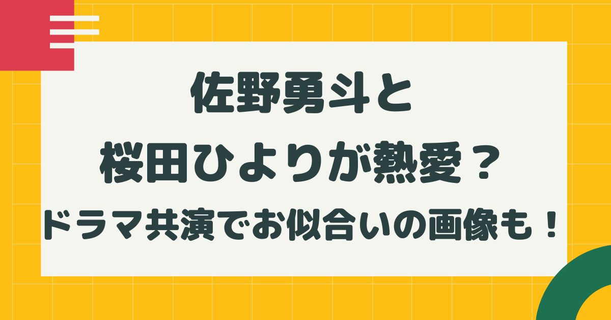 そこで今回は、俳優佐野勇斗さんと女優桜田ひよりさんのお二人に熱愛の可能性があるのか、どれほどお似合いなのかについて調査してみたいと思います♪